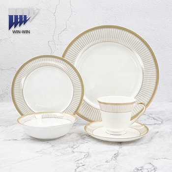 Conjunto de cena de alta calidad con hueso fino de China, populares diseños dorados brillantes, muy ligero y de buena calidad transparente
